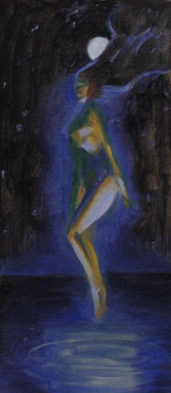 Huile sur papier. Le petit format me permet de maîtriser l'effet de touche large souhaité et de placer des espaces vides dynamiques.
